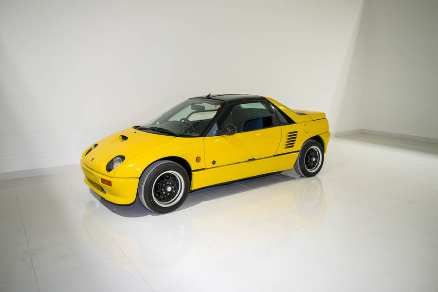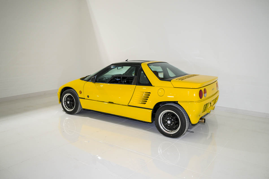 Produced by Mazda and sold through its Japanese-market Autozam dealership network from 1992 to 1994, the AZ-1 stands out with its lightweight plastic composite body panels, hood scoop, and straked radiator inlets. Originally delivered in Classic Red (SU), this particular example has been refinished in an eye-catching yellow, ensuring it turns heads wherever it goes.