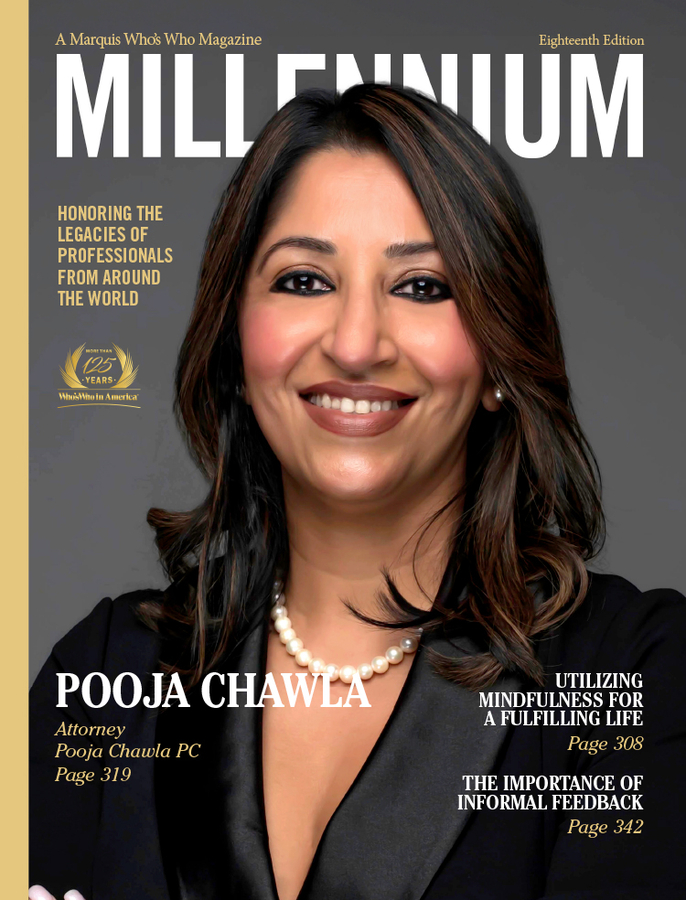 BIRMINGHAM, AL, April 02, 2025 /24-7PressRelease/ -- Pooja Chawla, attorney at Pooja Chawla PC, has been selected for a cover feature in the Eighteenth Edition of Marquis Millennium Magazine. Released triannually, Millennium Magazine features the narrative biographies of the world's most esteemed and accomplished professionals. The publication is available exclusively to Marquis listees, and inclusion is by invitation only.