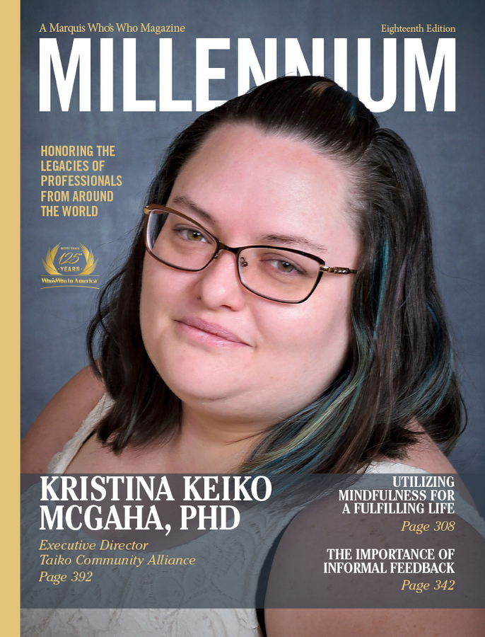 VAIL, AZ, April 02, 2025 /24-7PressRelease/ -- Kristina Keiko McGaha, PhD, executive director of the Taiko Community Alliance, has been selected for a cover feature in the Eighteenth Edition of Marquis Millennium Magazine. Released triannually, Millennium Magazine features the narrative biographies of the world's most esteemed and accomplished professionals. The publication is available exclusively to Marquis listees, and inclusion is by invitation only.