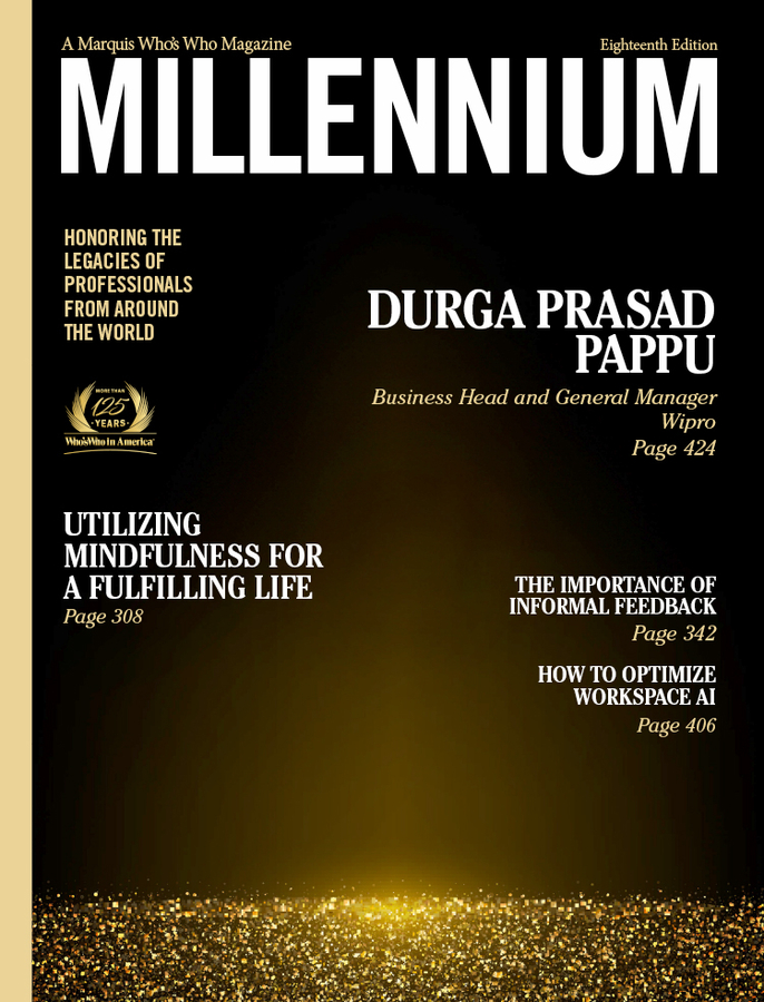 EDISON, NJ, April 02, 2025 /24-7PressRelease/ -- Durga Prasad Pappu, business head and general manager at Wipro, has been selected for a cover feature in the Eighteenth Edition of Marquis Millennium Magazine. Released triannually, Millennium Magazine features the narrative biographies of the world's most esteemed and accomplished professionals. The publication is available exclusively to Marquis listees, and inclusion is by invitation only.