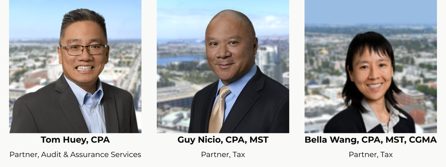 Bella Wang, Partner in the Tax Department, leads the firm's International Tax Practice and State and Local Tax (SALT) team, advising businesses on complex tax strategies and compliance. She is a frequent speaker on tax legislation and credits, serves as Vice President of the Asian Pacific Certified Public Accountants Association, and actively mentors aspiring CPAs. She is also a Board member of Women Shelter of Long Beach, a nonprofit organization that supports survivors of domestic violence through education and personal empowerment.