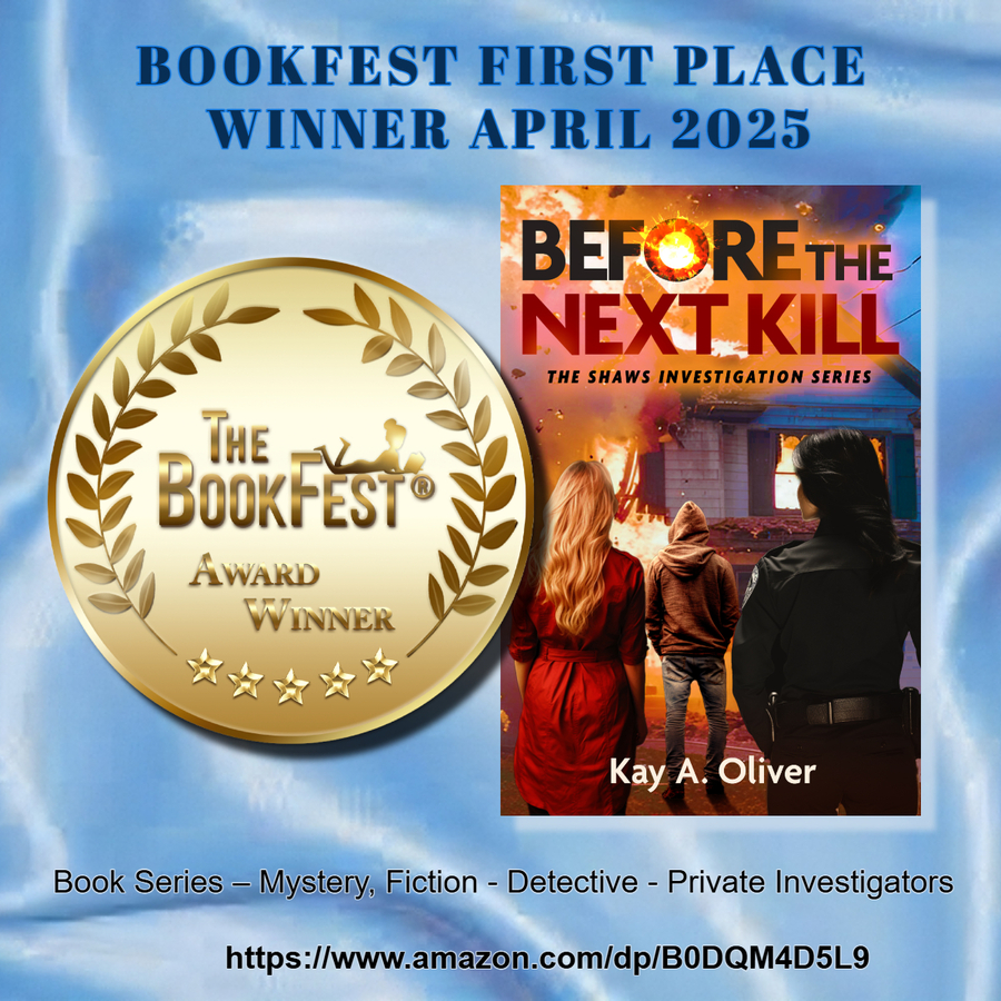 LOS ANGELES, CA, April 08, 2025 /24-7PressRelease/ -- Acclaimed author Kay A. Oliver has officially been named the Gold First-Place winner of the first ever Book Series Category at the The BookFest® Awards Spring 2025 for the standout literary work Before the Next Kill. The celebrated title triumphed in the highly competitive Book Series, Mystery, Fiction category, earning recognition among the best new books of the year.