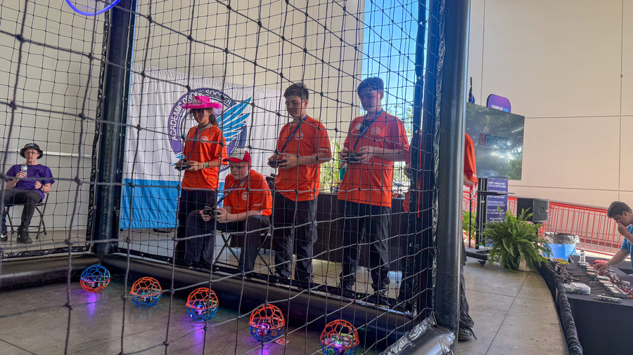 The Sun N' Fun Aerospace Expo also gave CSA learners rare access to career opportunities. In addition to competing, students attended youth sessions with Blue Angels pilots, connected with every branch of the U.S. military, visited the Hot Ramp to meet performing pilots, and spoke with aerospace employers about pathways into aviation careers. As drone soccer ambassadors, they will be featured by international news outlets.