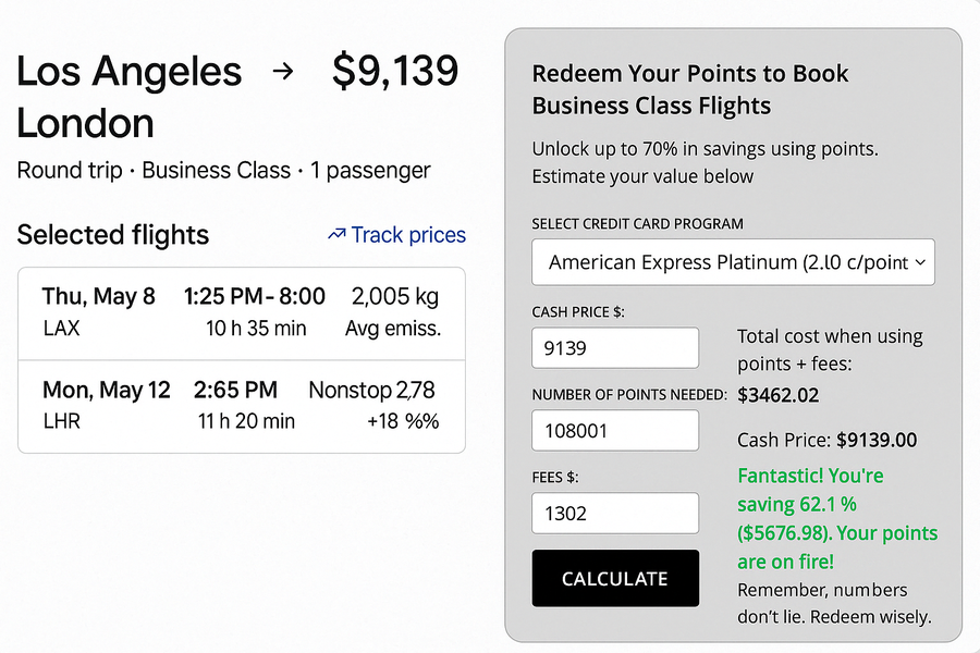 The newly launched Point Redemption Calculator is a fast, intuitive tool that lets travelers instantly estimate the real value of their Amex, Chase, or Capital One points toward international business class flights.