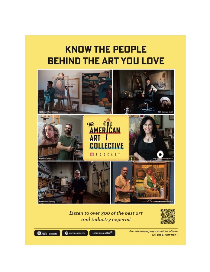 The podcast and the two magazine titles—as well as three other publications: American Fine Art Magazine, Native American Art and International Artist —are owned by parent company International Artist Publishing, based in Scottsdale, Arizona. You can find American Art Collective on Apple, Spotify, Audible and other major podcast services. The best way for listeners to stay in touch with the show and hear new episodes is to follow or subscribe, so new episodes are pushed to devices as they are released. The show is also on Instagram, @theamericanartcollective.