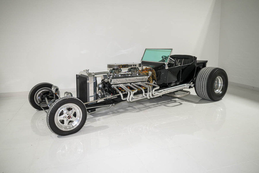 FORT WORTH, TX, May 07, 2025 /24-7PressRelease/ -- Among the most outrageous and awe-inspiring custom builds ever created, the 1923 Ford V16 T-Bucket – Black (Ex Petersen) is now on display at the DFW Car & Toy Museum. This jaw-dropping hot rod is not your typical T-bucket. Built by Al Mathon of Hicksville, New York, this street rod legend features a monstrous 700ci V16 engine, constructed by welding together two Chevrolet 350ci small-block V8s into one fire-breathing beast.
