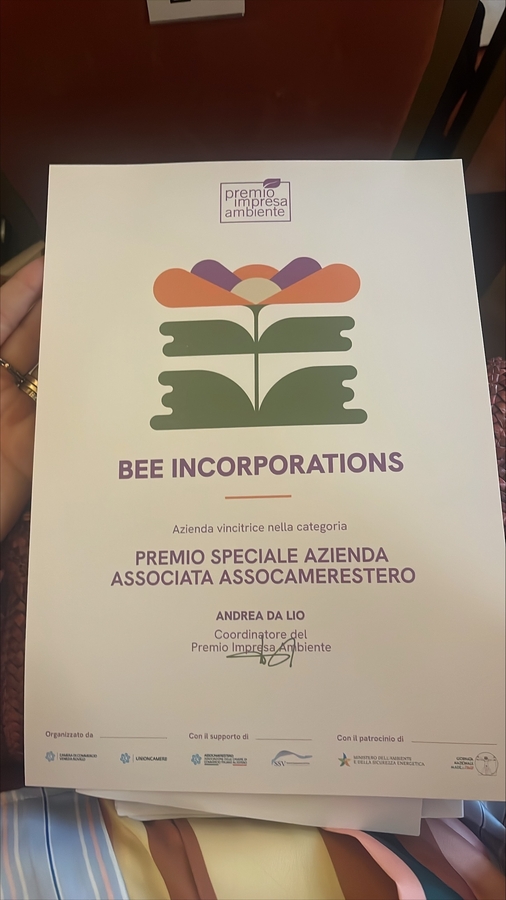 VENICE, ITALY, April 30, 2025 /24-7PressRelease/ -- BEE Incorporations has been awarded the Most Sustainable Italian Company Abroad at the 12th edition of the Premio Impresa Ambiente, Italy's highest recognition for sustainable business innovation and leadership. The award ceremony was held at the historic Teatro La Fenice in Venice, honoring outstanding contributions to environmental sustainability.