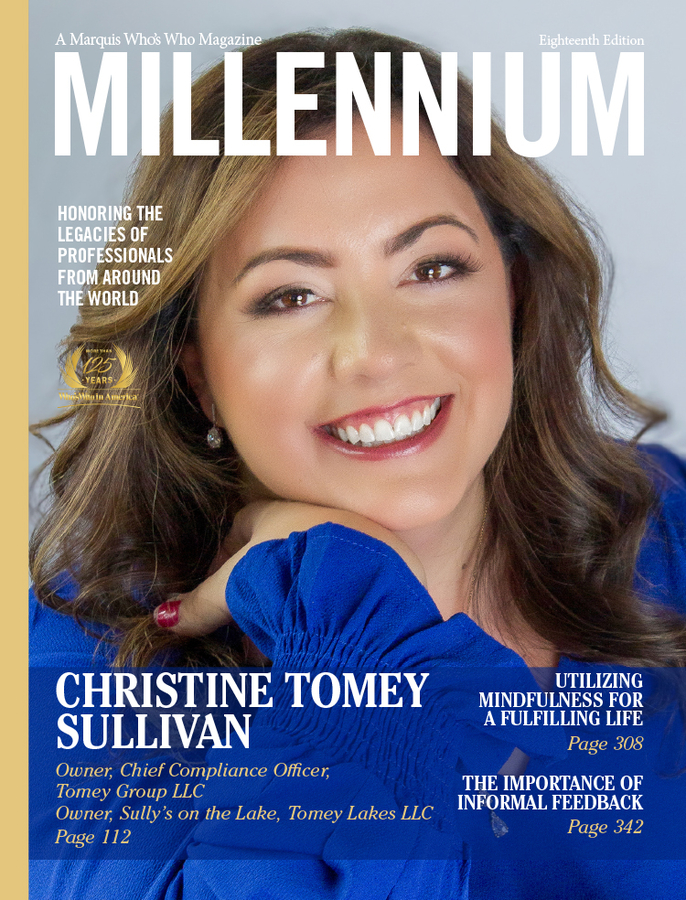 FARMINGTON HILLS, MI, May 06, 2025 /24-7PressRelease/ -- Christine Tomey Sullivan, owner and chief compliance officer of Tomey Group LLC and owner of Sully's On The Lake and Tomey Lakes LLC, has been selected for a cover feature in the Eighteenth Edition of Marquis Millennium Magazine. Released quarterly, Millennium Magazine features the narrative biographies of the world's most esteemed and accomplished professionals. The publication is available exclusively to Marquis listees, and inclusion is by invitation only.