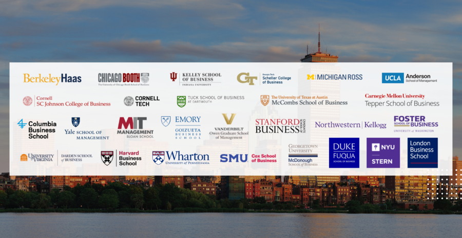 Participating schools include Harvard Business School, MIT Sloan, Stanford GSB, Columbia Business School, Chicago Booth, Berkeley Haas, and many more leading programs from across the U.S. and internationally.