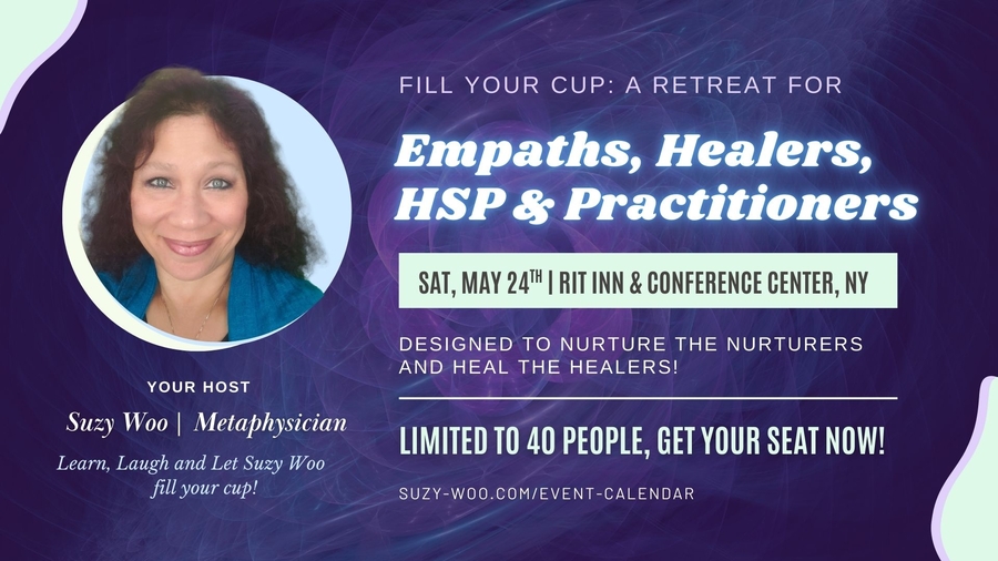 Suzy Woo is hosting a second one-day retreat the following day, for Psychic Development and Intuitive Training also at RIT. Persons who wish to attend both will get a $60 discount. The full event details are available under 'Events' at www.Suzy-Woo.com.