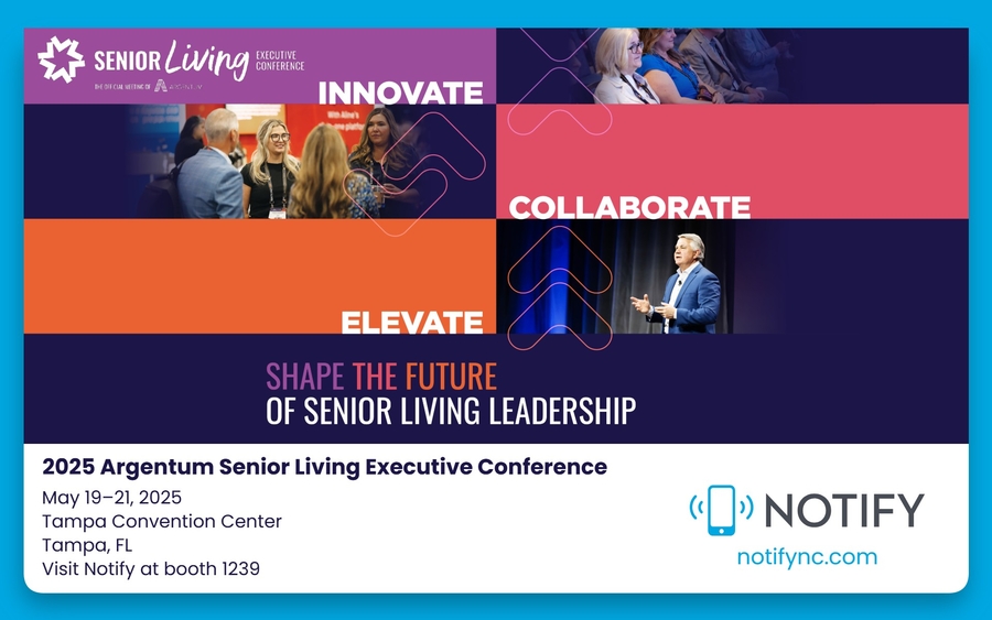 MINNETONKA, MN, May 14, 2025 /24-7PressRelease/ -- Notify, a leader in nurse call and communication solutions for senior living, will attend the 2025 Argentum Senior Living Executive Conference & Expo, taking place May 19–21 at the Tampa Convention Center in Tampa, FL.