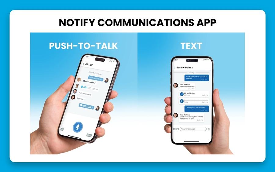 Notify Communications App – A WiFi-based, hands-free push-to-talk solution that replaces radios with secure, zone-based communication on smartphones already in use. It offers a fast, cost-effective upgrade for communities needing better communication tools.