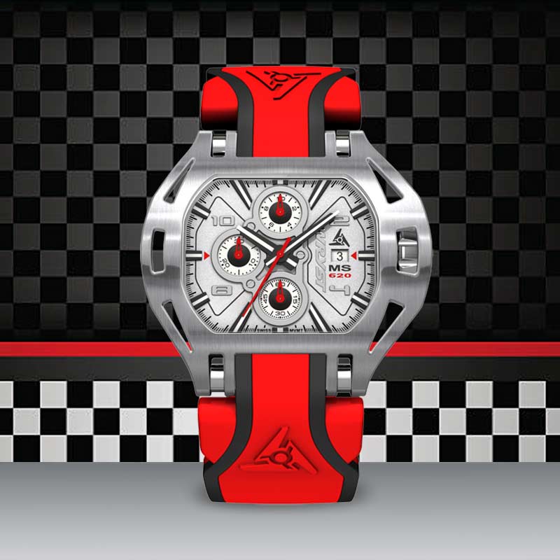 The Racer SX7's color scheme harmoniously reflects the positive and relaxed atmosphere of a flawless beach. Note that you can also choose the Wryst Swiss racing wrist watch with red strap, the mens automatic gold watch SX3, or even the Gold Watches for Men Wryst SX2.