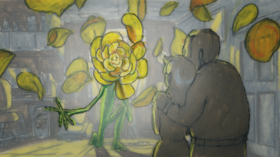 The documentary short is entirely hand-animated, with each frame colored using watercolor crayons before being digitally scanned–a labor-intensive process designed to evoke the tactile, emotional texture of memory and hallucination.