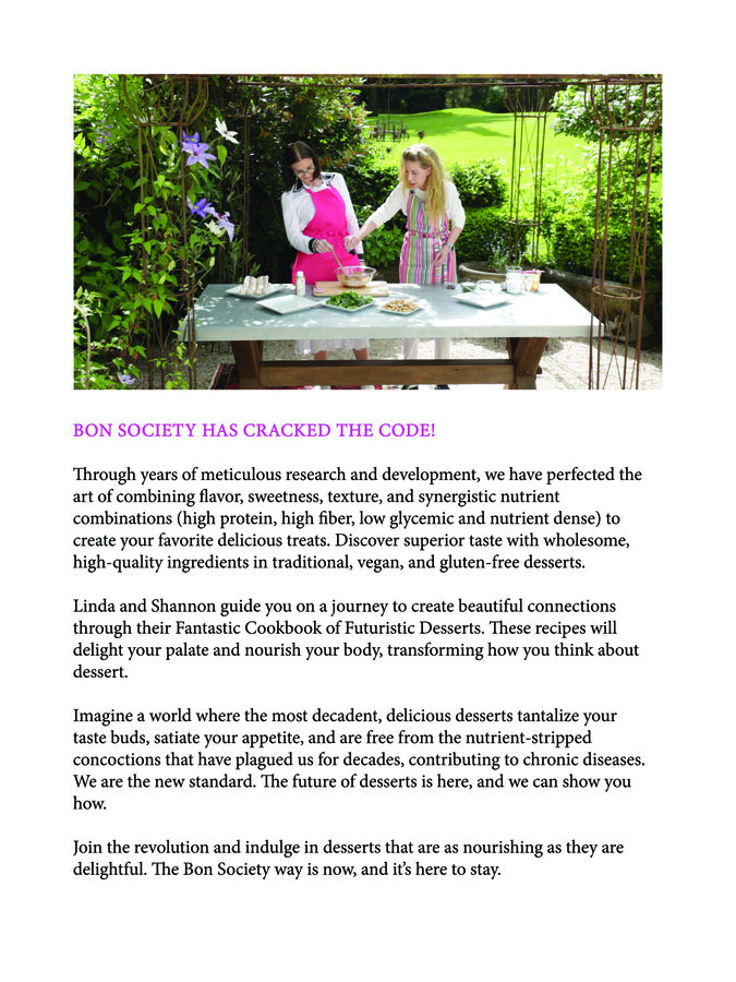 Over ten years, Linda developed a body of recipes that take desserts back to their roots. She sourced organic, wholegrain, low-glycemic, high-protein, and even vegetable-based ingredients to create treats kids would love and adults would crave. Think "healthy delights" that crush the idea that health and taste are opposites.