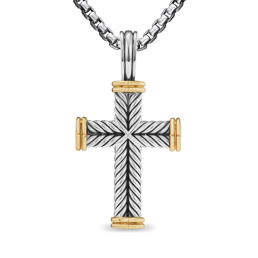Consider the David Yurman Chevron Cross Pendant in Sterling Silver with 18K Yellow Gold as a striking symbol of faith and strength. With its bold design and mixed metal craftsmanship, this pendant is perfect for fathers who wear their values with pride.