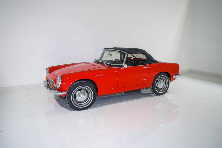 Originally sold in France and imported to the United States in the 1970s, this left-hand drive S600 is a rare and charming survivor from Honda's first foray into four-wheeled transportation. Powered by a remarkably advanced 606cc DOHC inline-four, the engine breathes through quadruple side-draft carburetors and revs to an astonishing 11,000 rpm, a true testament to Honda's engineering bravado.