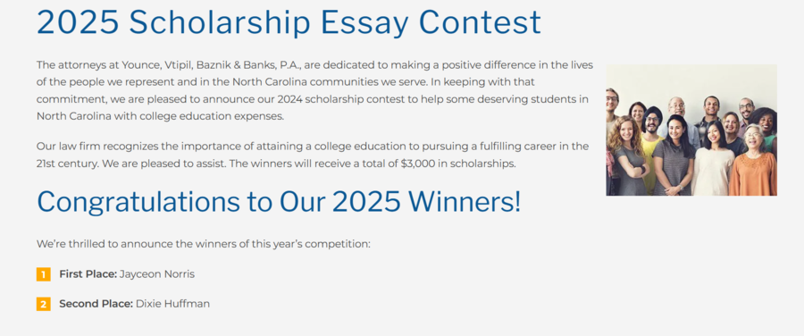 RALEIGH, NC, June 18, 2025 /24-7PressRelease/ -- To help accomplish that, the firm hosts an annual essay contest and awards a total of $3,000 in scholarship prizes to the winners. They hope these funds can help deserving students in North Carolina with college expenses in order to meet their educational and career goals. This year's applicants answered the question: Tell us what justice means to you and how you plan to make society more just in the future.