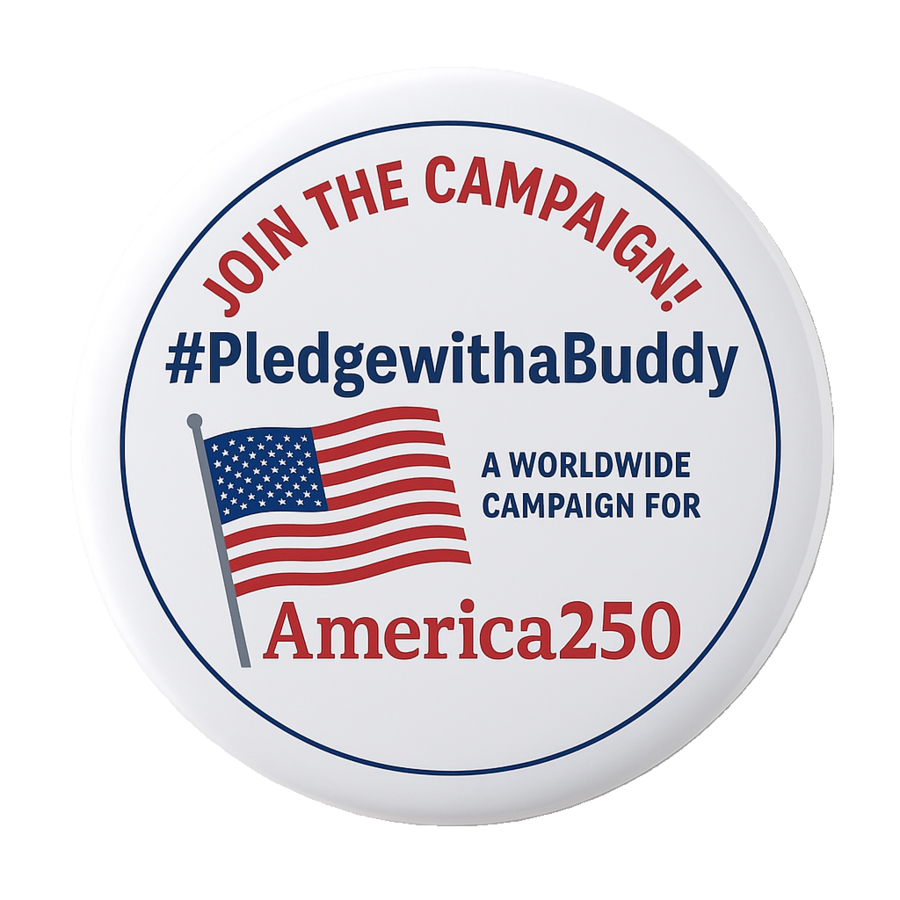 This global campaign aims to collect 250 pledges a month leading up to the America250 milestone — from classrooms, living rooms, community halls, and military bases worldwide.