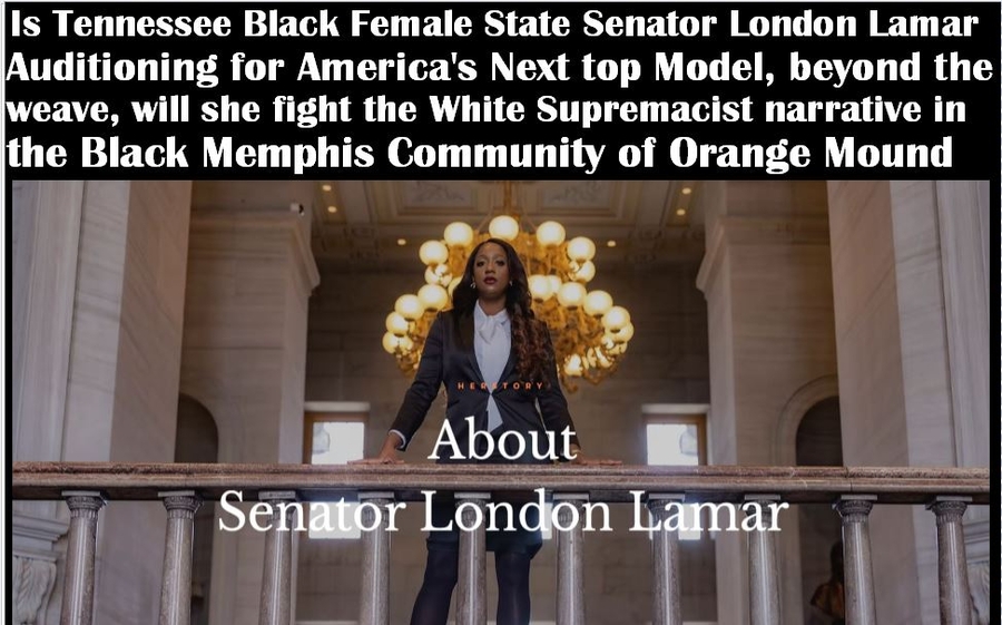 Elmore ask the reader to Click here to learn about London Lamar the Tennessee State Senator. Elmore asks the question is she "Auditioning for America Next Top Model or is she an effective Tennessee State Senator." Elmore notes that behind her weave could she in the lease get the racist historical marker removed from Orange Mound.