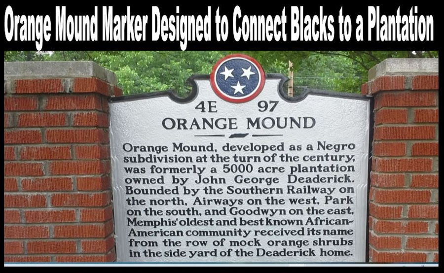 Click here to see a 30 minute documentary produced by Filmmaker Anthony "Amp" Elmore titled: "Orange Mound Sign White Supremacy Racism Jet Eye Mind Trick." Filmmaker Anthony "Amp" Elmore goes into explaining Memphis White Supremacy, Racism and Black on Black Racism how the plan was created to rob the Black Community of Orange Mound of its rightful place in American history whereas the film details how White Filmmaker Jay Killingsworth and his wife Amy Killingsworth created a PBS Special titled "A Community Called Orange Mound." The film racially and unjustly connects Orange Mound to the John George Deaderick plantation.