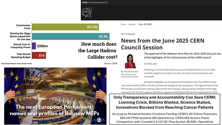 DALLAS, TX, June 30, 2025 /24-7PressRelease/ -- The Crosetto Foundation for the Reduction of Cancer Deaths, dedicated to defending taxpayers and cancer patients, is taking a firm stand against the recent approval, on 20 June 2025, by the CERN Council of the Medium-Term Plan (MTP) to secure resources for the Phase 2 upgrades of the ATLAS and CMS experiments. Irrefutable facts and evidence demonstrate that these plans will waste taxpayers over €12 billion in the next decade.