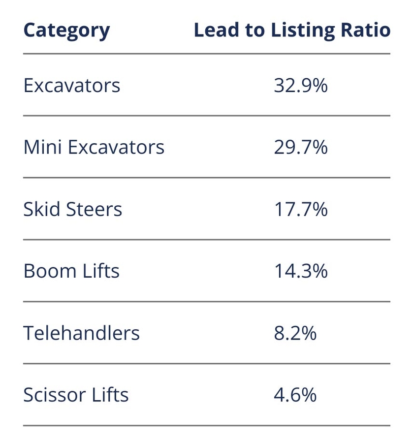 While aerial equipment garners high overall interest, mini excavators and excavators are generating the most leads per listing—indicating tighter inventory and more serious buyers.