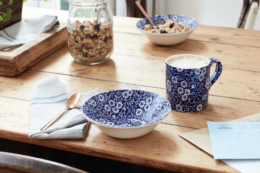 The brand's distinctive blue patterns have made it a favorite for generations. From the enduring popularity of Blue Calico to the recently revived Blue Prunus collection - based on an original 1913 archive design - Burleigh's blue tableware brings a sense of quiet luxury and cultural heritage to homes.