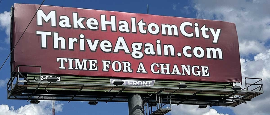 Billboards throughout Tarrant County lead to website with his proposed plans to revitalize the aging corridors of South and Central Haltom City